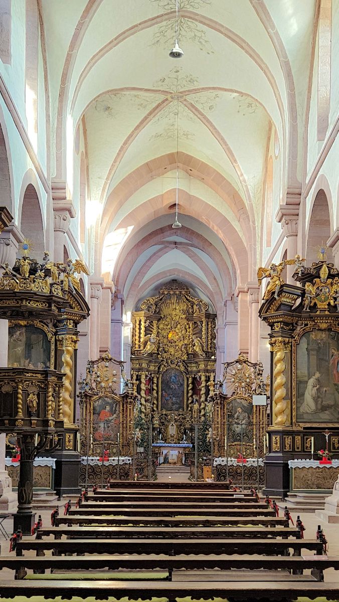 Bei Würzburger Künstlern wie Balthasar Esterbauer und Oswald Onghers gab er Neuanfertigungen mehrerer Altäre in Auftrag, die zwischen 1704 und 1707 geschaffen wurden. Die alten Altäre erhielten teils neue Standorte. Ein neuer Hochaltar kam 1712 bis 1714 dazu, inklusive einer Ausschmückung des Chorraums mit Sesseln für Abt und Prior sowie einer Holzvertäfelung mit Intarsienarbeiten. Die gesamte Raumausstattung bis hin zur Kanzel weist dieselben Schmuckelemente auf, so dass die Innenausstattung wie aus einem Guss wirkt.