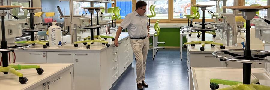 Landrat Christoph Schauder hat vor kurzem gemeinsam mit Amtsleiter Joachim Aragón und Projektleiterin Kerstin Sack aus dem Immobilienmanagement des Landratsamtes Main-Tauber-Kreis den Baufortschritt bei der Generalsanierung des Beruflichen Schulzentrums (BSZ) in Wertheim begutachtet. Auch die Unterrichts- und Verwaltungsräume, die derzeit in Container ausgelagert sind, besichtigte der Landrat.
