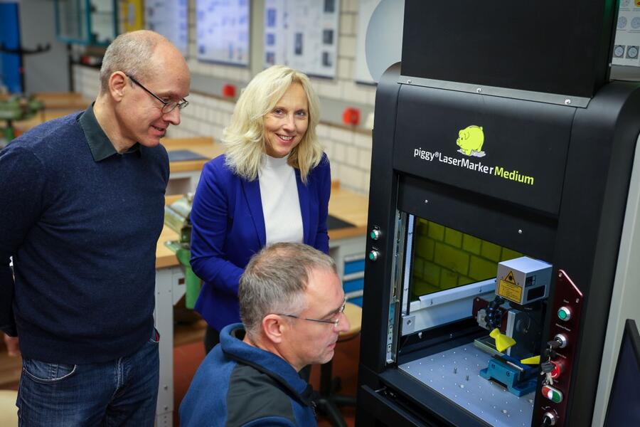 Für die Metallgewerke wurde ein Lasergravur-Gerät angeschafft, mit dem sich in der Ausbildung sowie in der Meisterschule Werkstücke gravieren oder per Laser zuschneiden lassen. Zudem wurde in eine neue Fräsmaschine mit automatischem Vorschub in drei Achsen investiert, die in der Berufsfachschule für Metalltechnik, in den dualen Ausbildungsberufen des beruflichen Gymnasiums für Mechatronik sowie in der Meisterschule Anwendung findet. „Diese technischen Ausstattungen entsprechen dem gängigen Standard in der Industrie“, sagte Peter Wöhrle. Zudem wurden einzelne Werkstatträume modernisiert sowie neu möbliert.