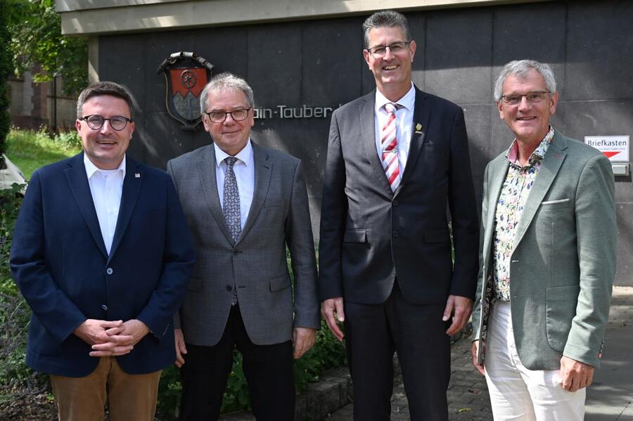 Der Präsident des Landesamtes für Geoinformation und Landentwicklung (LGL), Dieter Ziesel, hat zusammen mit seinem Abteilungsleiter für Flurneuordnung und Liegenschaftskataster, Jürgen Eisenmann, das Vermessungs- und Flurneuordnungsamt des Main-Tauber-Kreises besucht. Nach einer Gesprächsrunde mit allen Mitarbeiterinnen und Mitarbeitern des Amtes stand der Antrittsbesuch bei Landrat Christoph Schauder an.