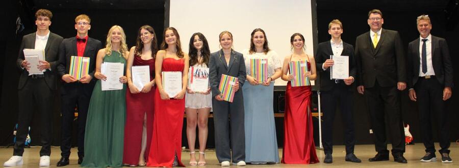 „Ich gratuliere Ihnen ganz herzlich, Sie haben das Abi mit Bravour bestanden und halten nun den wohlverdienten Abschluss in Ihren Händen. Während ihrer Schulzeit konnten sie außer dem Schulwissen auch wertvolle Erfahrungen auf sozialer und emotionaler Ebene entdecken und erleben“, sagte der Schulleiter. Zudem bedankte er sich bei den Eltern, Freunden und Lehrkräften, welche die Absolventinnen und Absolventen stets unterstützt und motiviert und damit für ein gutes Gelingen gesorgt haben. Er bat die Abiturientinnen und Abiturienten, „Mut zu haben, ihre Träume zu verfolgen und das Glück in den kleinen Dingen aber auch im großen Umfeld zu finden.“