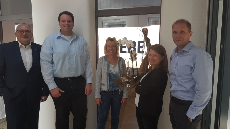 Die Firma Uebe Medical GmbH hat zwei Bestandsgebäude im Külsheimer Gewerbepark II saniert und zu Büro-, Geschäfts- und Produktionsräumen umgebaut. Bürgermeister Thomas Schreglmann und die Geschäftsführerinnen der Business Area Külsheim GmbH (BAK) begrüßten den Firmeninhaber Felix Uebe mit Geschäftsführer Thomas Neubeck in Külsheim.